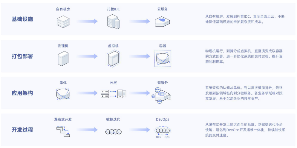 企业数字化系统的建设需要关注基础设施、打包部署、应用架构和开发过程多个要素。