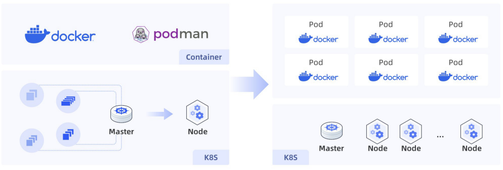 Kubernetes(K8S):容器技术引入了容器管理和部署的复杂性等问题,K8S则使用Pod作为最小管理单位,在Pod内运行容器镜像,顺利获得容器集群管理能力,实现容器资源的编排和生命周期的管理,很好地解决了容器自动化部署、大规模弹性伸缩等能力。