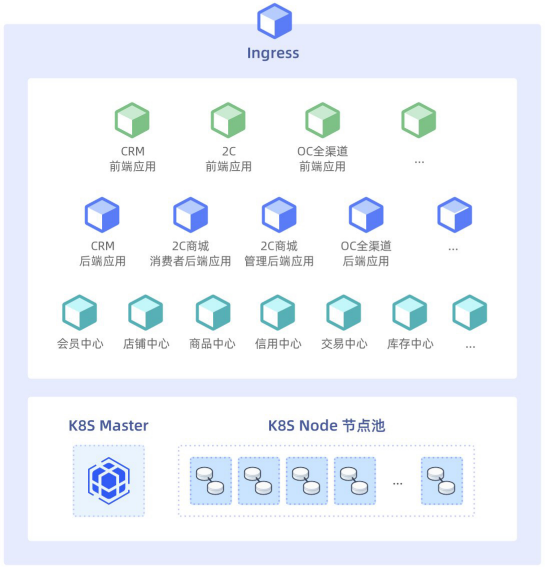 其次,以Ingress作为系统入口节点,隔离内外部,统一给予外部访问,根据路由规划转发请求,并可感知集群内服务的变化,触发访问规则的动态刷新。