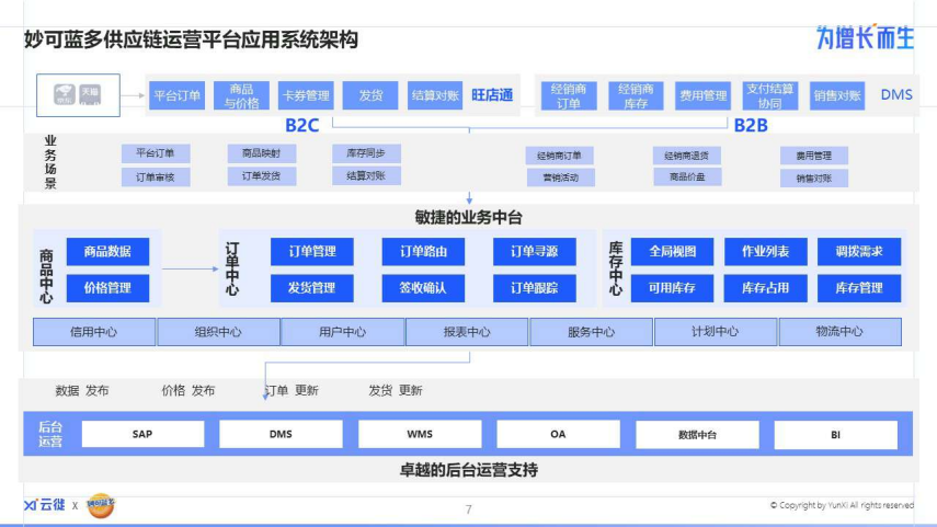 业务中台的上线,能够支撑起包含营销、供应链在内的诸多模块。