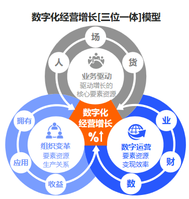 我们认为:需要将业务驱动、 数字运营和组织变革三者耦合形成“三位一体、相互驱动”关系,从“点-线-面-体-网”五个层次立体化解决“增长驱动力是什么?增长效率和稳健性如何提升?谁来自驱式实现增长?”三个问题。