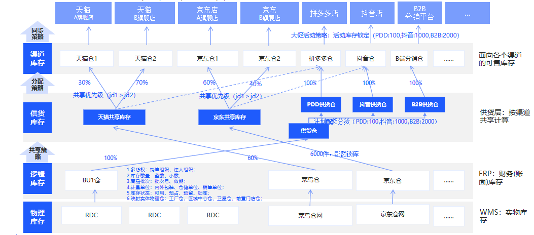 4.逻辑库存预占策略:特定行业渠道订单预占(货权、批次、商品标签)。