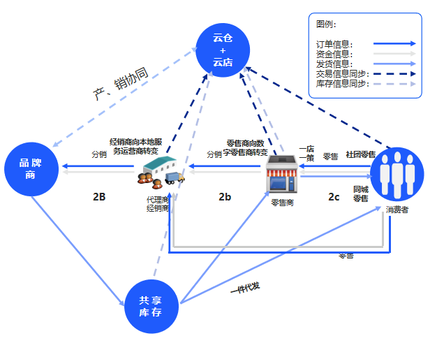 主要是围绕着品牌商、经销商、物流端和零售端之间的分工。原来经销商管库存的这一部分工作,把计划类、统筹类的转移到了品牌商。物流实操层面的事情全部转到了物流端。