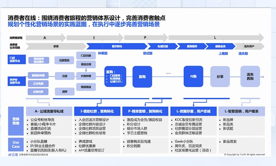第一:消费者在线:围绕消费者旅程的营销体系设计,完善消费者触点。规划个性化营销场景的实施蓝图,在执行中逐步完善营销场景。