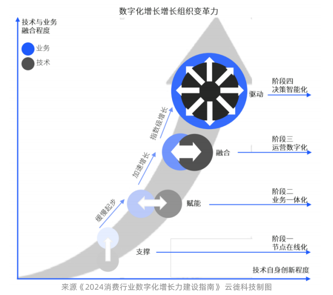 现在中国大部分消费行业企业数字化运营力大部分均处于节点在线化阶段,顺利获得单体系统满足了单个业务领域的业务和管理需求,需要设计富有远见且切实可行的演进路线,通往运营数字化和决策智能化阶段。