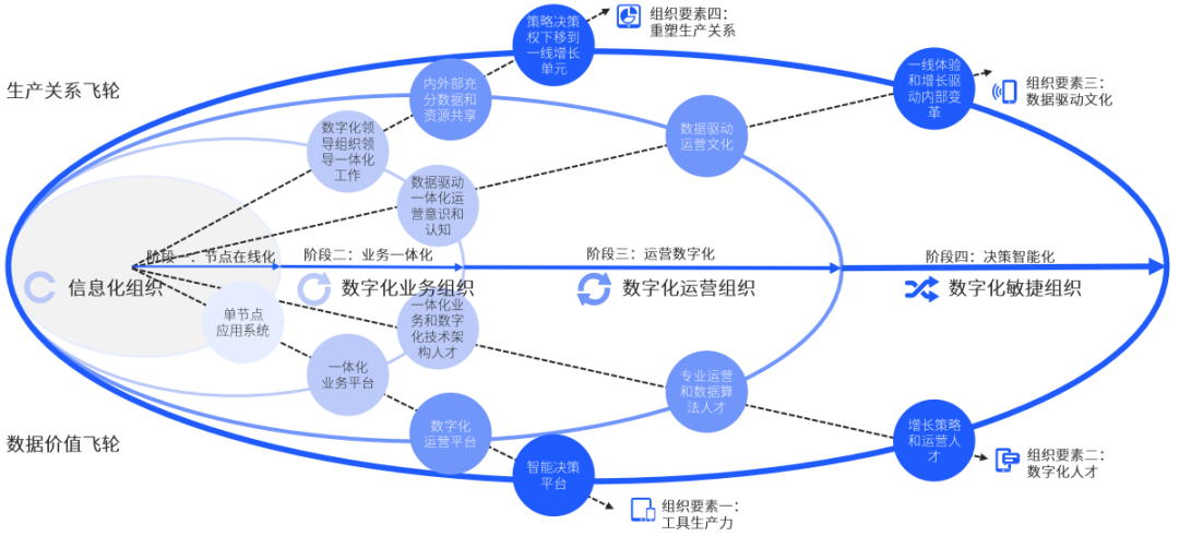 将上述【商品力】【渠道力】【触点力】【营销力】分解在价值链前端,即成品出厂至消费者消费这一段,可以成对应的八个领域级数字运营力和两个企业级数字运营力,在落地层面顺利获得业数融合的数字化运营支撑四个驱动力能够在企业层面被各个部门协同实施推进落实。